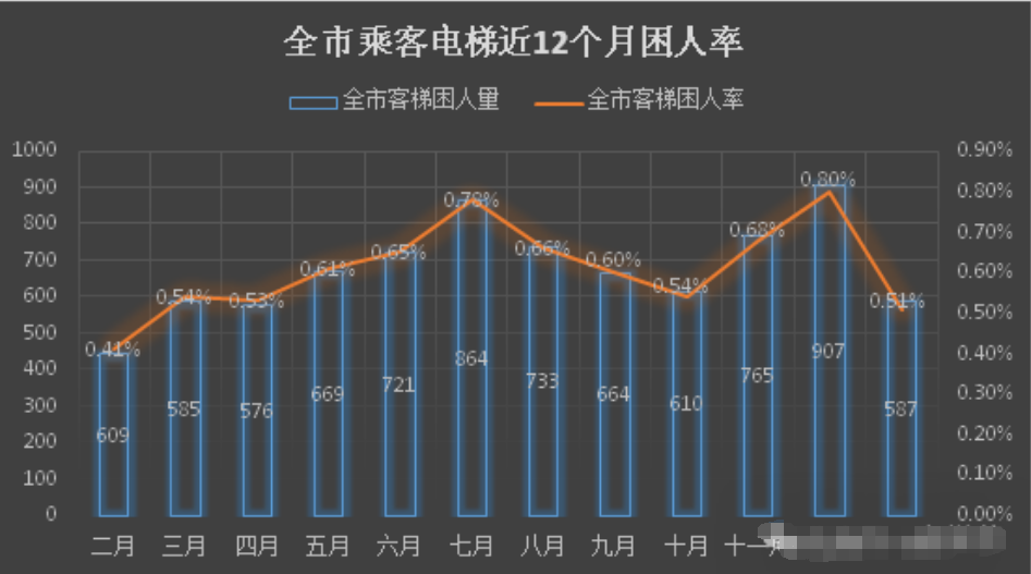 注:全市客梯困人率=每月客梯困人次数÷当月全市在用客梯总数×100%